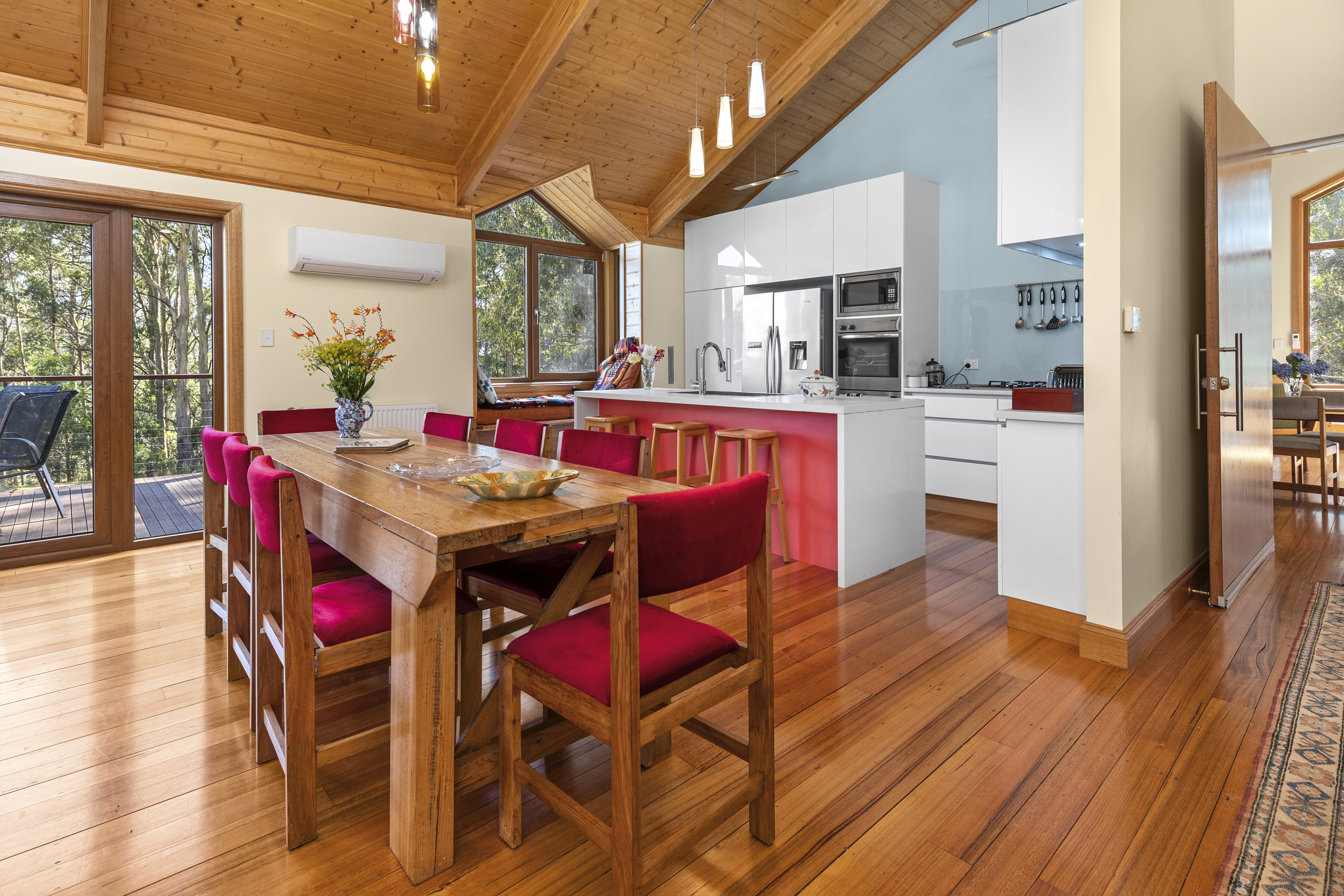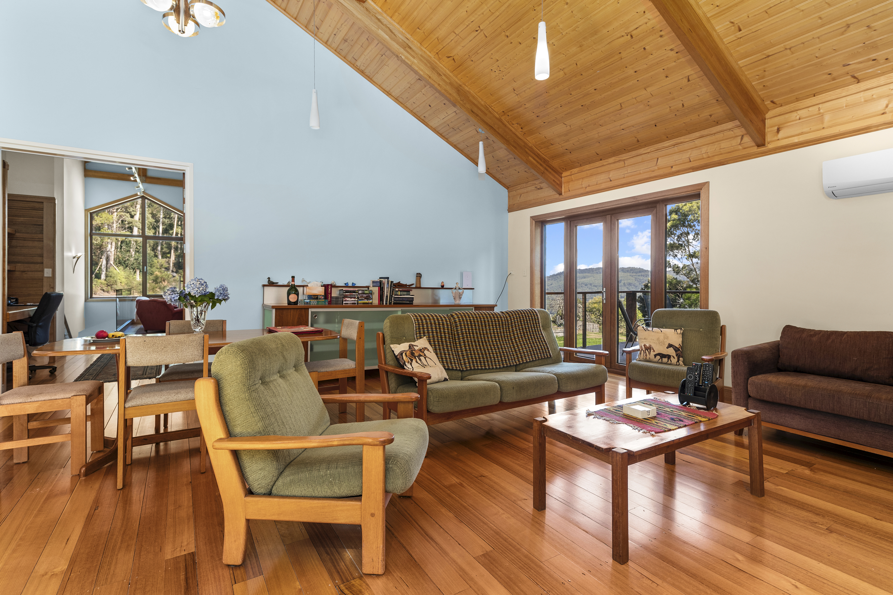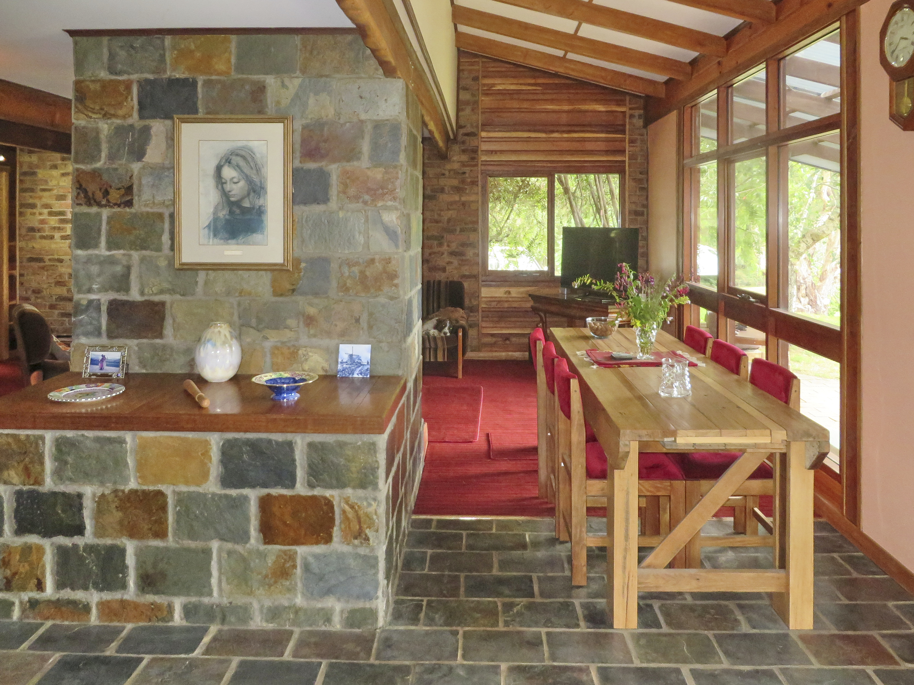 Heating is by either a 3 speed Heat Charm I-600 wood heater in the lounge and Hydronic underfloor heating powered by an ESSE wood-burning range in the kitchen.