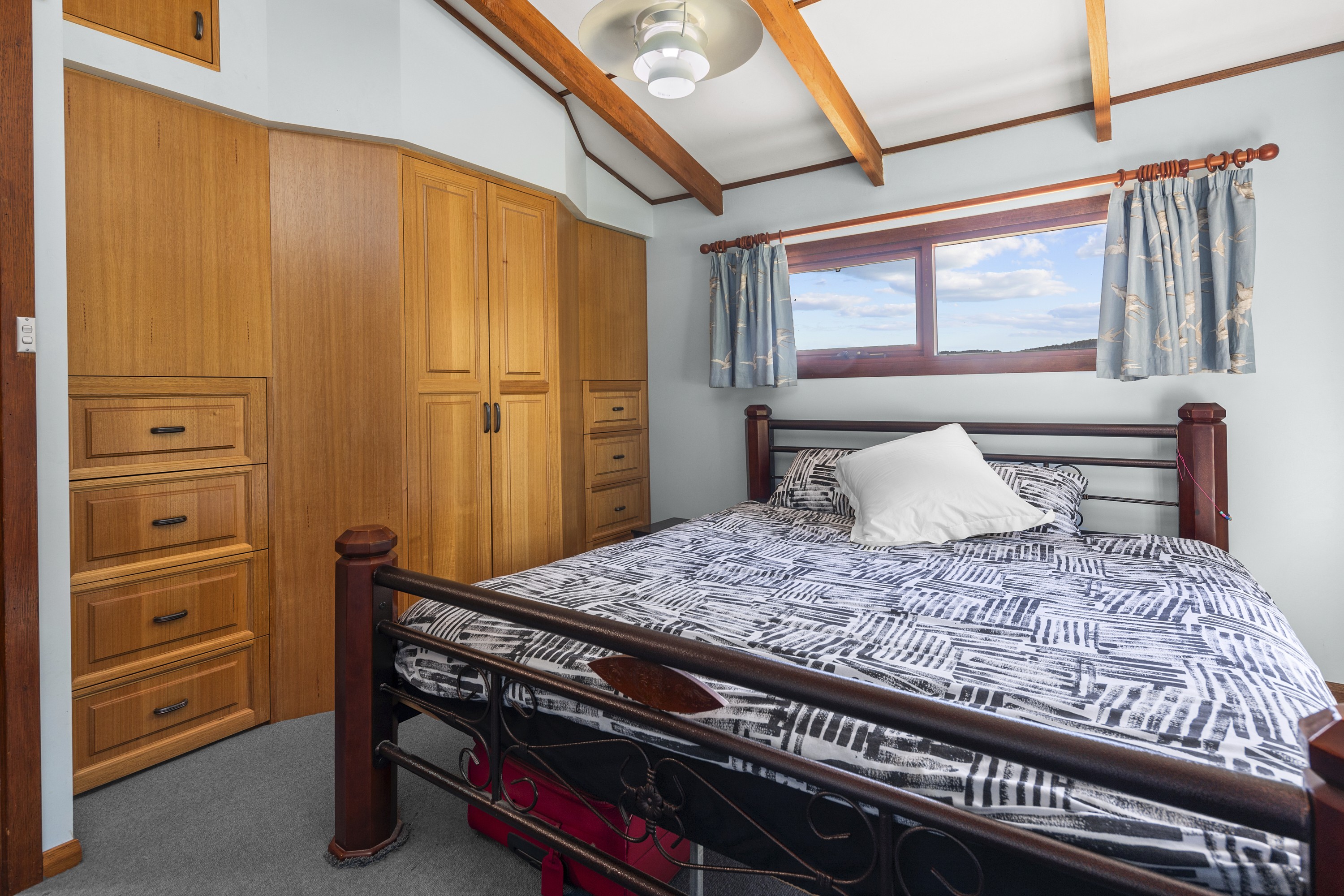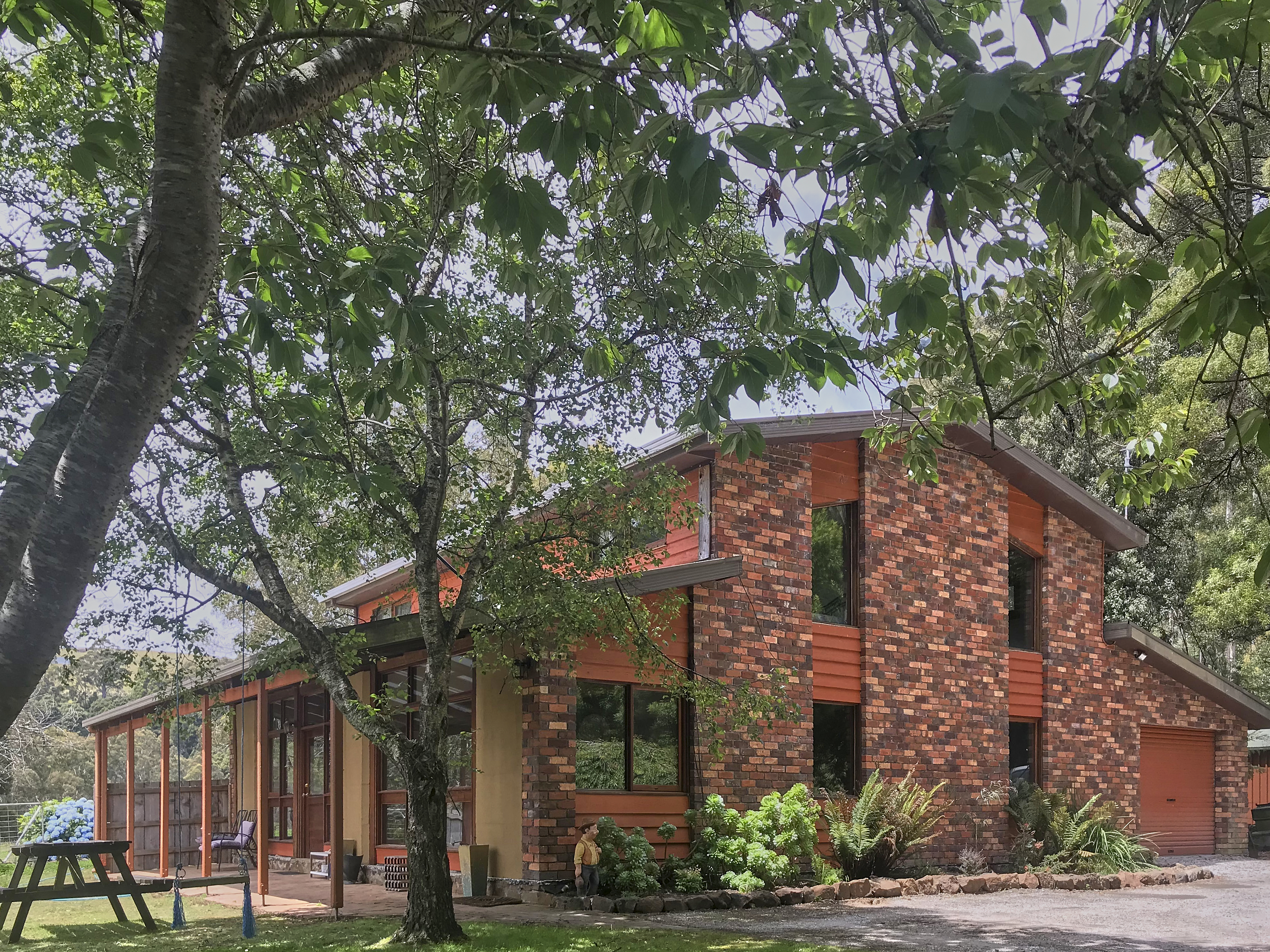 1989 House Construction:- brick, mud brick, & timber With Colourbond roof / concrete slab A celery-top trunk supports the stairwell and the walls are paneled with blackwood. 4 bedrooms (all upstairs) master with walk-in robe, bedroom 4 with built-in robe Spacious upstairs vanity (toilet & wash basin) Upstairs lounge