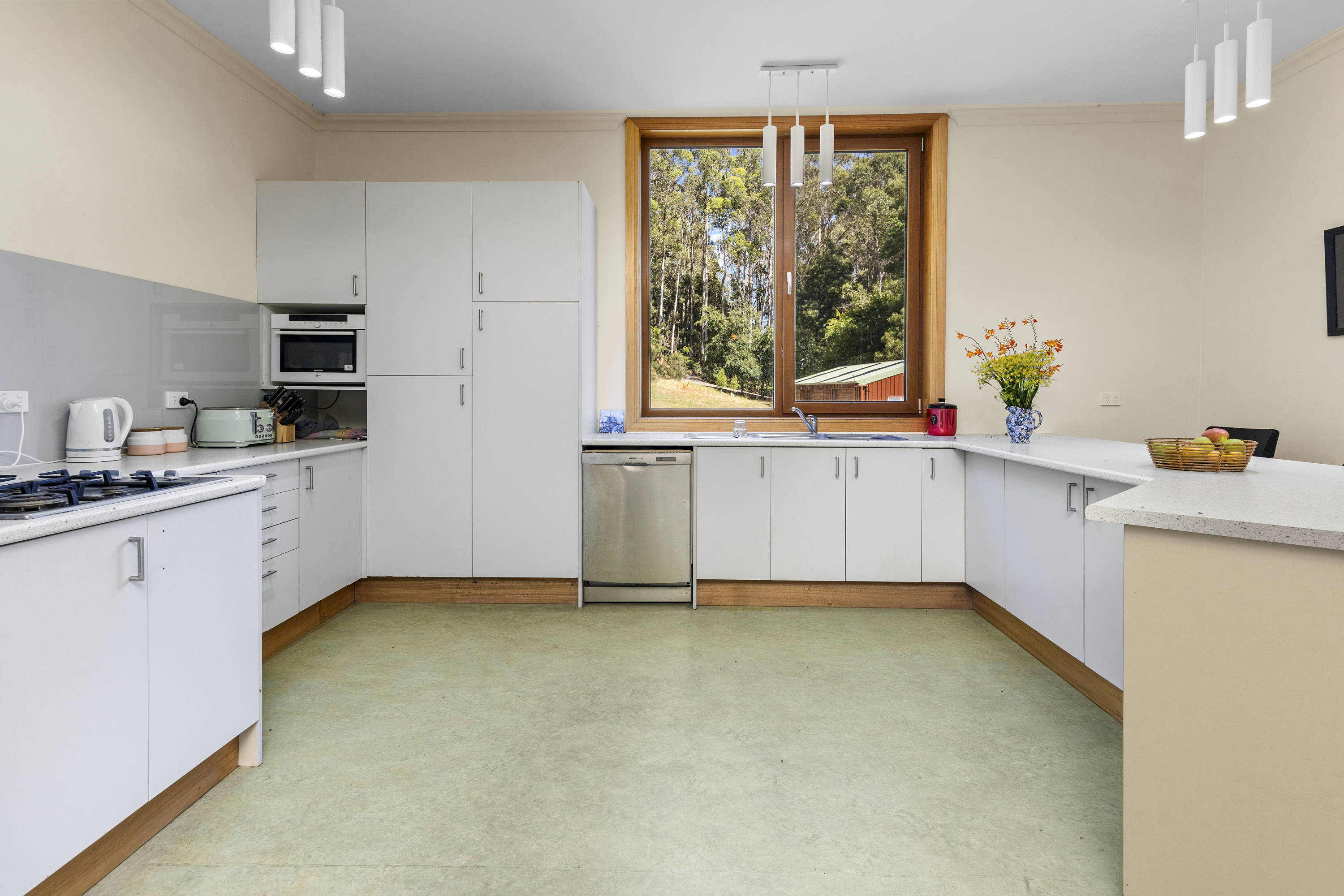 This 23 acre property, 20 minutes drive south of Penguin and Ulverstone, is the setting for two lovely houses, one with three independent residences, supported by truly exceptional water and power infrastructure, and surrounded by healthy wet white gum forest.