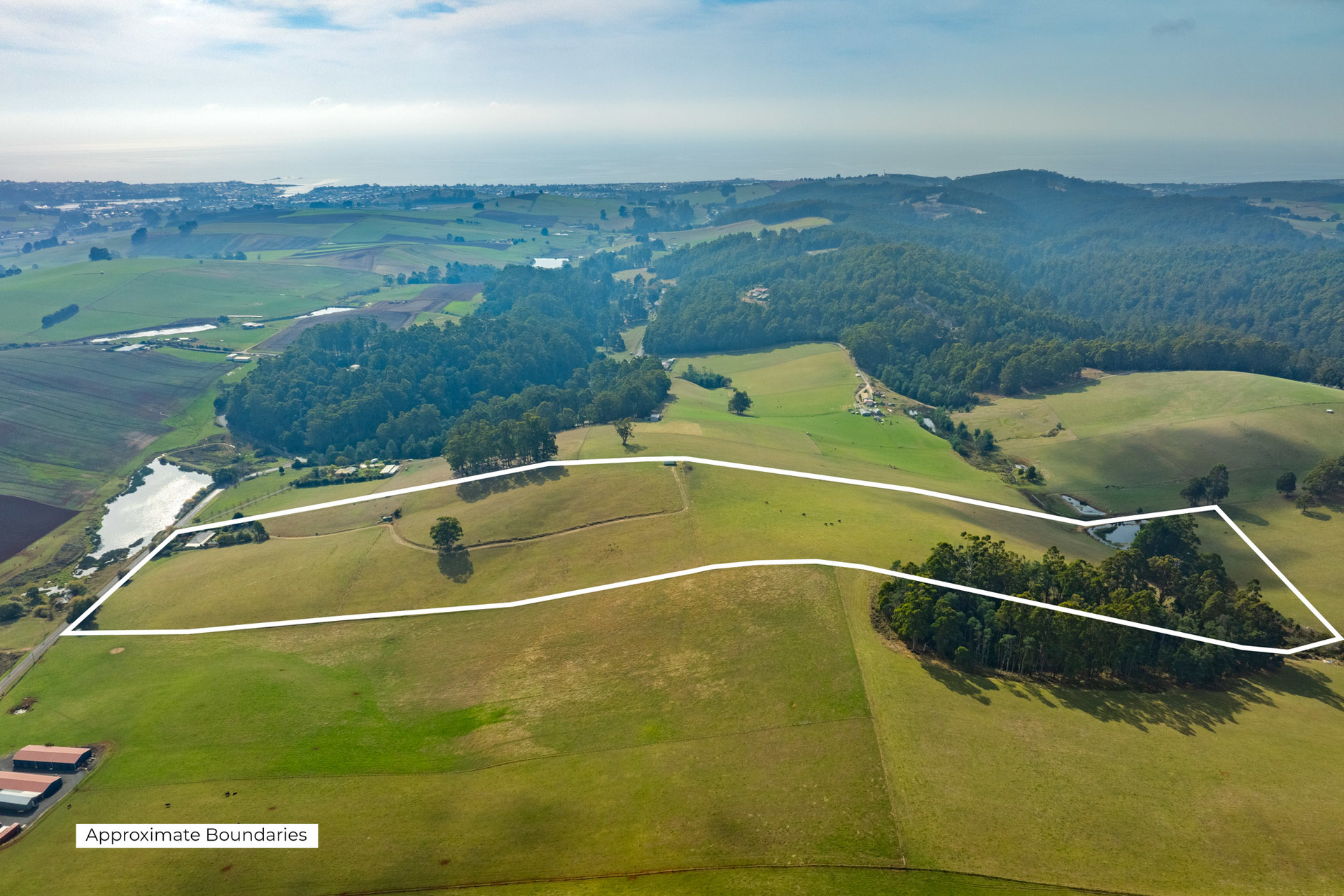 The property features a large fully enclosed machinery shed on the hill, providing ample storage for equipment and livestock.