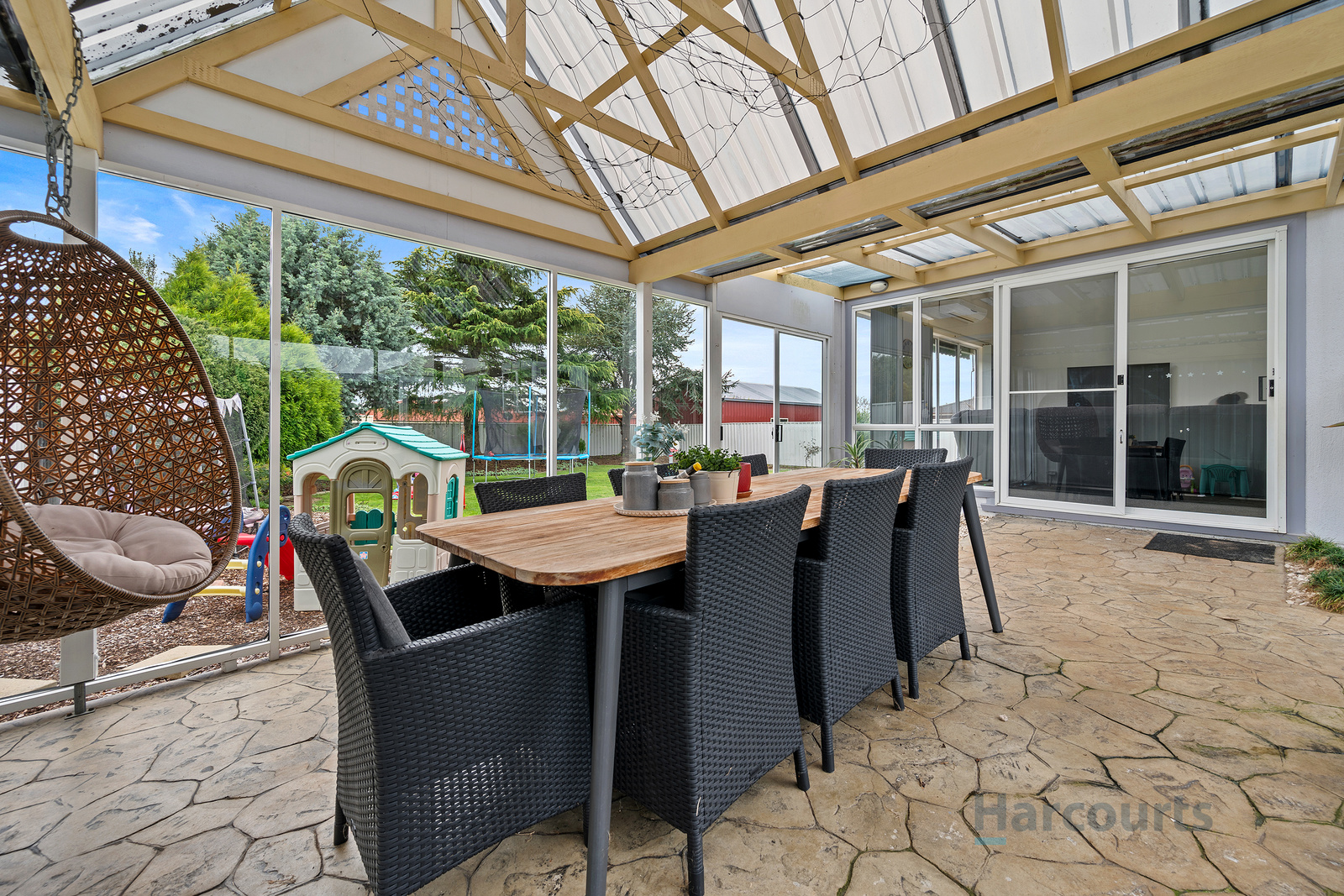The property's entertainment appeal is further enhanced by the undercover and fully enclosed entertainment area, which seamlessly flows from the main living space. This setup makes hosting family gatherings and social events effortless.
